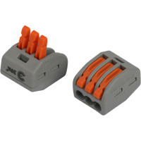 Строительно-монтажная клемма ЭРА модель 413 с рычагом на 3 отверстия с сечением провода 0.08-2.5/4 мм2 предназначена для многоразового присоединения и ответвления одножильных и многожильных проводников из меди в электрических цепях переменного тока с частотой 50 Гц напряжением до 450 В. Корпус клемм изготовлен из из полиамида 6.6, монтаж не требует использования инструментов. Упаковка 4 штуки.