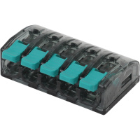 Строительно-монтажная клемма ЭРА модель 415 с рычагом на 5 отверстий с сечением провода 0,5-4 мм2 предназначена для многоразового присоединения и ответвления одножильных и многожильных проводников из меди в электрических цепях переменного тока с частотой 50 Гц напряжением до 400 В. Корпус клемм изготовлен из самозатухающего пластика, монтаж не требует использования инструментов.
