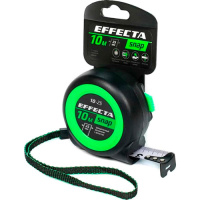 Рулетка EFFECTA Snap 10 м х 25 мм выполнена в компактном корпусе из прочного ABS пластика. Трещоточный механизм. Подвижной зацеп для внешнего и внутреннего замеров. Автостоп. II класс точности.