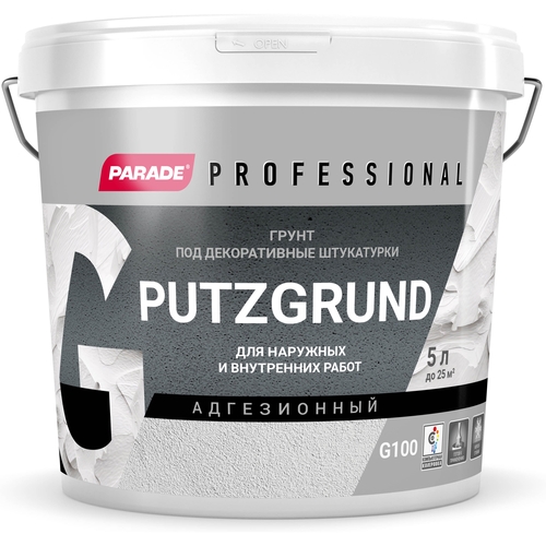 Специализированный грунт ПАРАД G100 под штукатурку белый 5 л предназначен для подготовки поверхности перед нанесением декоративных структурных покрытий. Оптимален для подготовки и нанесения большинства декоративных покрытий серии ПАРАД Деко. Создает непрозрачное слабоструктурированное шероховатое грунтовочное покрытие, обеспечивающее надежное сцепление декоративных покрытий с основанием. Обладает стойкостью к атмосферным воздействиям, паропроницаемостью. Легко наносится.