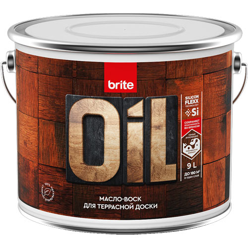 Масло-воск для террасной доски BRITE FLEXX предназначено для защиты террас, деревянных полов, садовых построек и мебели. Натуральные масла глубоко проникают в структуру дерева, позволяя ему свободно расширяться и сжиматься при изменении температуры и влажности. Карнаубский воск создает прочное, износостойкое покрытие, которое обладает водо- и грязеотталкивающими свойствами, эффективно препятствует проникновению и размножению микроорганизмов. Подходит для всех пород древесины. После высыхания не образует видимой плёнки, сохраняя естественный оттенок дерева.