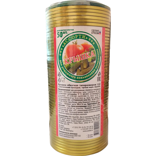 Изготовлена из белой жести, покрыта пищевым лаком. По внутреннему ободку крышки проходит резиновое пищевое уплотнительное кольцо для герметичного закрывания банки. Крышка полностью соответствует требованиям ГОСТ Р 51214-98 П.4.1., сертифицирована, прошла все необходимые санитарно-эпидемиологические исследования.
